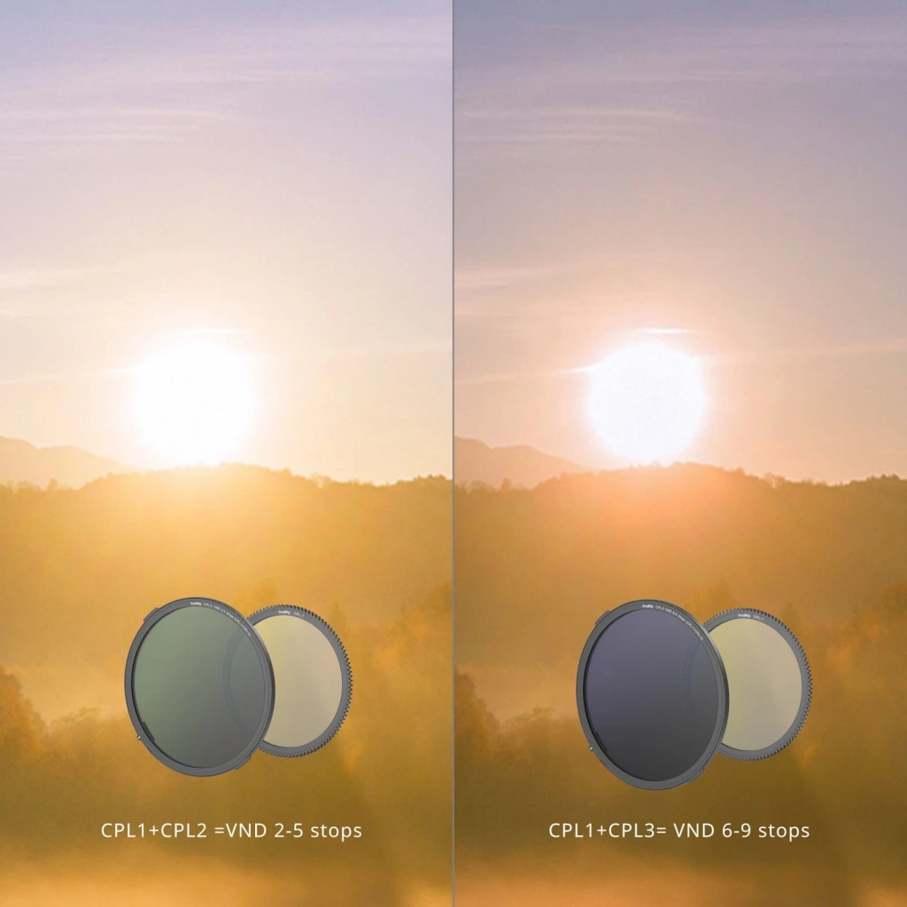 SmallRig VND Filtre Kiti 4649, hafif ve hızlı filtre montajı deneyimi arayan kullanıcılar için tasarlanmıştır. Mat kutunun benzersiz ayarlanabilir kelepçe tasarımı, kelepçenin her iki tarafındaki itme çubuklarına ve üstteki kilitleme düğmesine basarak hızlı montaj ve sökme sağlayan üç noktalı bir kilitleme sistemine sahiptir. 67,0 - 82,0 mm (2,6 - 3,2 inç) ayarlanabilir kelepçe aralığıyla, popüler aynasız ve sinema lensleriyle geniş uyumluluk sunar. İnce tasarımıyla dairesel filtreleri sorunsuz bir şekilde barındırır, ≥16 mm odak uzaklıklarında (tam kare kameralar ve lensler için) vinyetleme olmamasını sağlayarak zorlu koşullarda parlamayı etkili bir şekilde azaltır. Kitteki tüm filtreler serbestçe birleştirilebilir ve CPL filtreleri manyetik olarak istiflenebilir. CPL1'i CPL2 ile kullanırken, 2 ila 5 duraklık bir VND efekti elde eder; CPL1'i CPL3 ile kullanırken, 6 ila 9 duraklık bir VND efekti elde ederek sonsuz ayarlanabilirlik sunar. Sert durdurmalar ve ışık iletimi sınır teknolojisiyle birleştirilen bu filtreler, VND X-desen etkisini etkili bir şekilde ortadan kaldırır. İthal yüksek çözünürlüklü cam ve 16 katmanlı çift kaplama teknolojisini kullanan filtreler, 350-700nm dalga boyu aralığında son derece doğru renk üretimi ve minimum renk bozulması sağlar.
