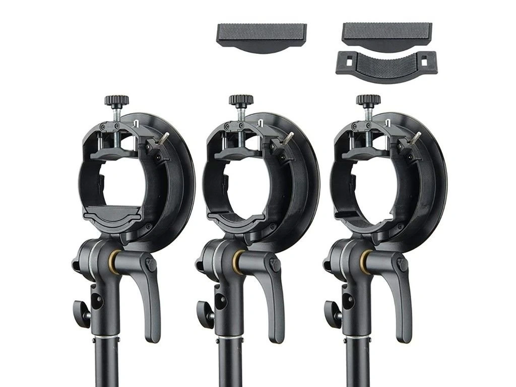 Çoğu speedlite uyacak şekilde ayarlanabilen Godox S2 Speedlite Bracket, Bowens için orijinal S tipi braketten daha kompakt ve taşınabilirdir. Bowens aksesuarlarını kullanmanıza izin verirken kamera flaşınızın potansiyelini en üst düzeye çıkarmanızı sağlar. Braket, flaşınızı dikey olarak veya yatay olarak destekler, dokunmatik bağlantı elemanları veya bant yerine çiziksiz, hafif basınç kullanır. Reflektörler, softboxlar ve snootlar gibi ışık değiştiriciler, bir Bowens flaş kafasında olduğu gibi braketin önüne monte edilir. Braket yaklaşık 180 derece eğilebilir ve stand montajı için 5/8 inçlik bir alıcıya sahiptir.