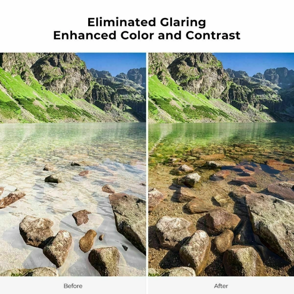 * Japonya optik camından yapılmış K&F Concept dairesel polarizörü, mavi gökyüzünün yoğunluğunu derinleştirir; parlamayı azaltır veya ortadan kaldırır.