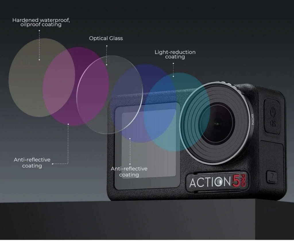 * 【28 Çok Katmanlı Kaplama】Çok katmanlı filtre parlama ve parlamaları en aza indirir, su geçirmez, çizilmeye dayanıklı, toz geçirmez ve yağ geçirmezdir, aksiyon kameranızın lensini her türlü darbeden korur.