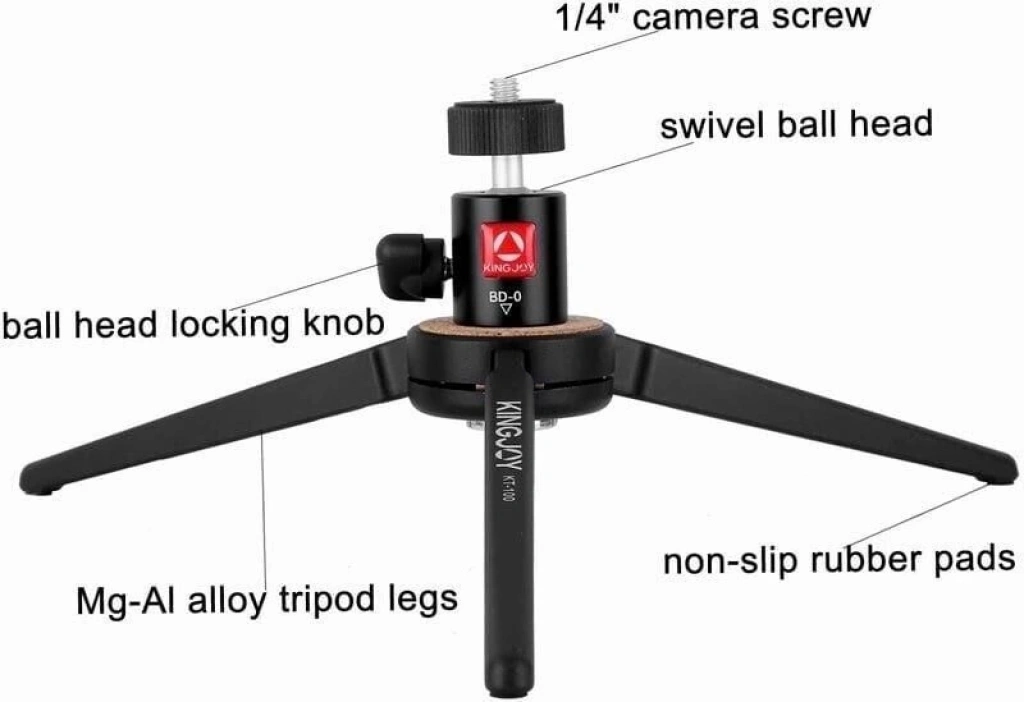 Kameralar için Kingjoy KT-100-BD-0 siyah Masaüstü Tripod Seti,