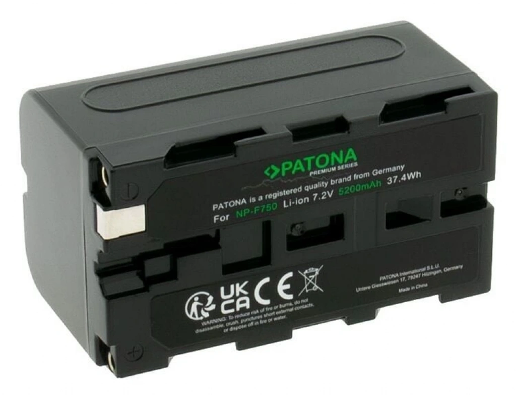 PATONA Premium 1176 Batarya, Sony NP-F serisi kameralar ve video ekipmanları için özel olarak geliştirilmiş yüksek kapasiteli bir yedek pildir. 5200mAh / 37,4Wh / 7.2V değerleriyle uzun çekim süreleri sunar. Li-Ion teknolojisi sayesinde dayanıklı, hafif ve güvenilirdir.