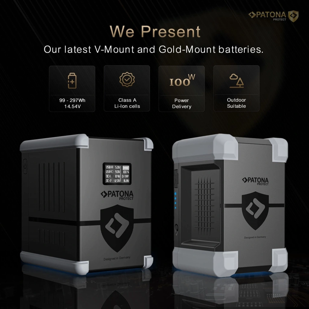 USB-C PD100W, USB-A, D-Tap ve 2x DC çıkış bağlantılarına sahip PATONA PROTECT V-Mount piller