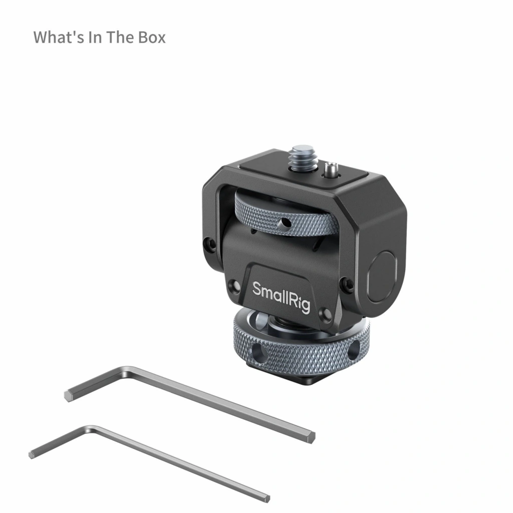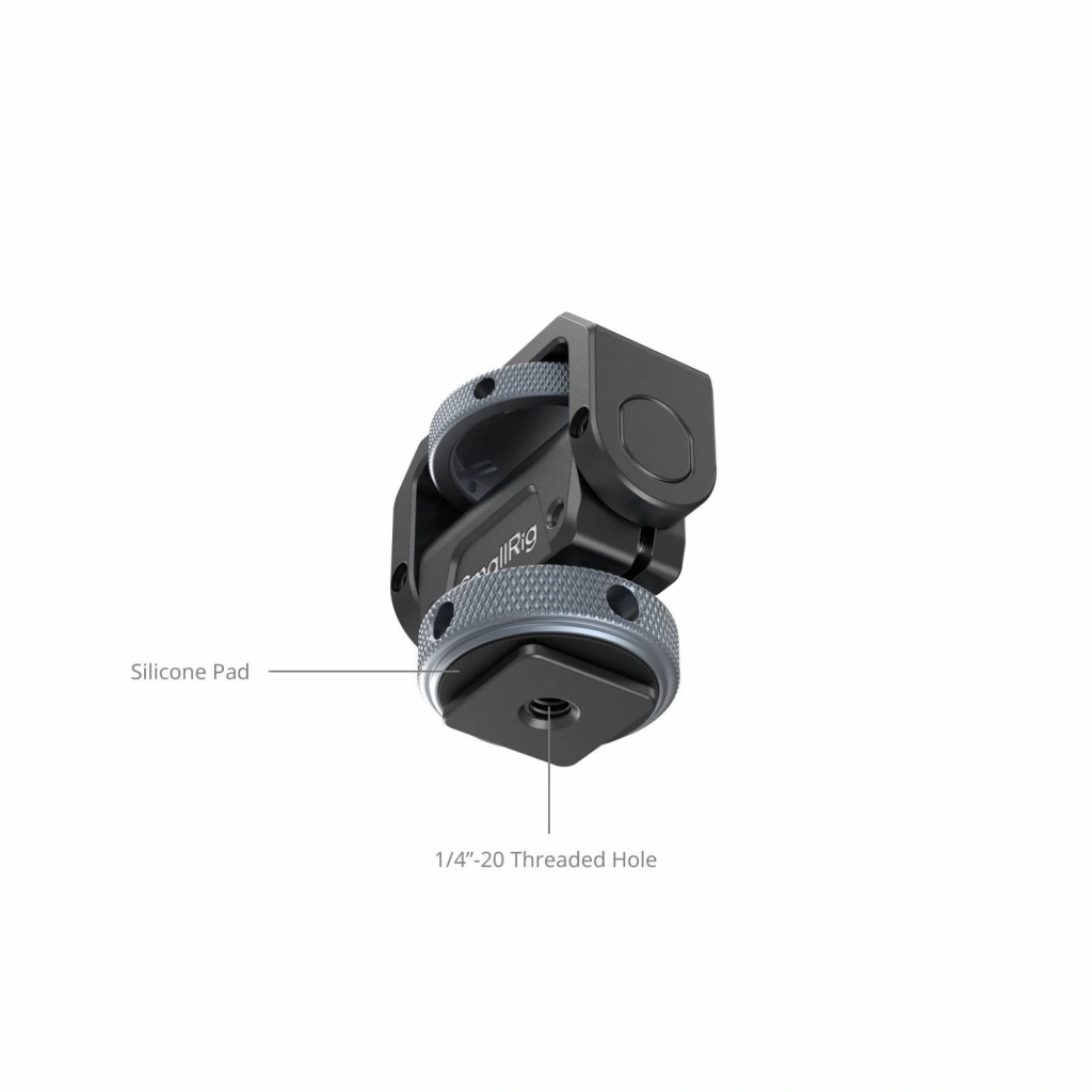 Alttaki soğuk yuva, kamera sıcak yuvaları veya kafes/tutacak soğuk yuva montajları üzerinde çok yönlü kurulum seçenekleri sunan ve cihazın çizilmesini önleyen ve güvenli bir uyum sağlayan gömülü bir silikon ped içerir. Üstteki 1/4"-20 vida, belirli cihazları sabitlemek, sapmayı önlemek ve güvenliği sağlamak için çıkarılabilir yerleştirme pimlerine sahiptir ve monitörlerin, mikrofonların, ışıkların ve daha fazlasının takılmasını sağlar. Destek, bir anahtar kullanarak gerginliği ayarlayarak yatay 360° ve dikey 180° ayarlamaya izin verir.