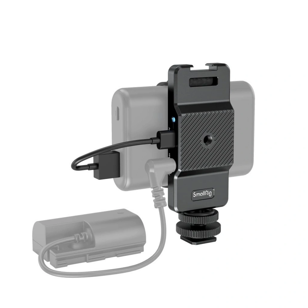 SmallRig Güç Bankası Adaptörü 3085  , daha iyi çekim deneyimleri için kamerayı şarj etmek için güç bankalarıyla birlikte gelir. Silikon kayış kullanarak farklı boyutlardaki güç bankalarını hızla sabitleyebilir ve Sony, Canon, BMPCC 4K&6K, Nikon, FUJIFILM ve Panasonic kameraları sahte pillerle şarj edebilir (NP-FZ100/ ID: 2922, NP-FW50/ ID: 2921, LP -E6/ ID: 2919, EN-EL15b/ ID: 3247, NP-W235/ ID: 3246, DMW-BLF19/ ID: 3248), pil durumunu gösteren bir LED ışığı ile. Adaptör, Tip C 5V-9V (12V Maks) girişe ve DC 7.4V/2A çıkışa sahiptir. 1/4"-20 dişli delikler ve sihirli kollarla kafese takılır ve soğuk ayakkabı yuvalarına sahip LED ışıkları ve mikrofonları destekler.