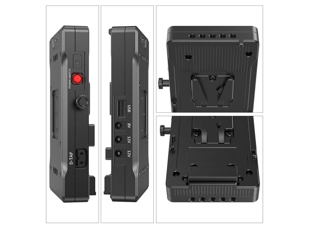 V yuvalı pil aracılığıyla kamera donanımınıza daha uzun pil ömrü sağlamak için tasarlanmıştır. Standart bir V montajı kullanan plaka, çoğu V montajlı pile uyar. Kameranıza ve monitör, telefon vb. V montajlı pil. Donanımınızı daha hızlı ve rahat bir şekilde açmak veya kapatmak için tüm çıkış bağlantı noktalarını kontrol eden bir güç anahtarına sahiptir. Plakayı 15 mm LWS çubuk sisteminize monte etmenize yardımcı olmak için ikili bir 15 mm çubuk kelepçesi ve V montajlı pil konumunun hızlı ayarlanması için ayarlanabilir bir kol ile birlikte gelir.
