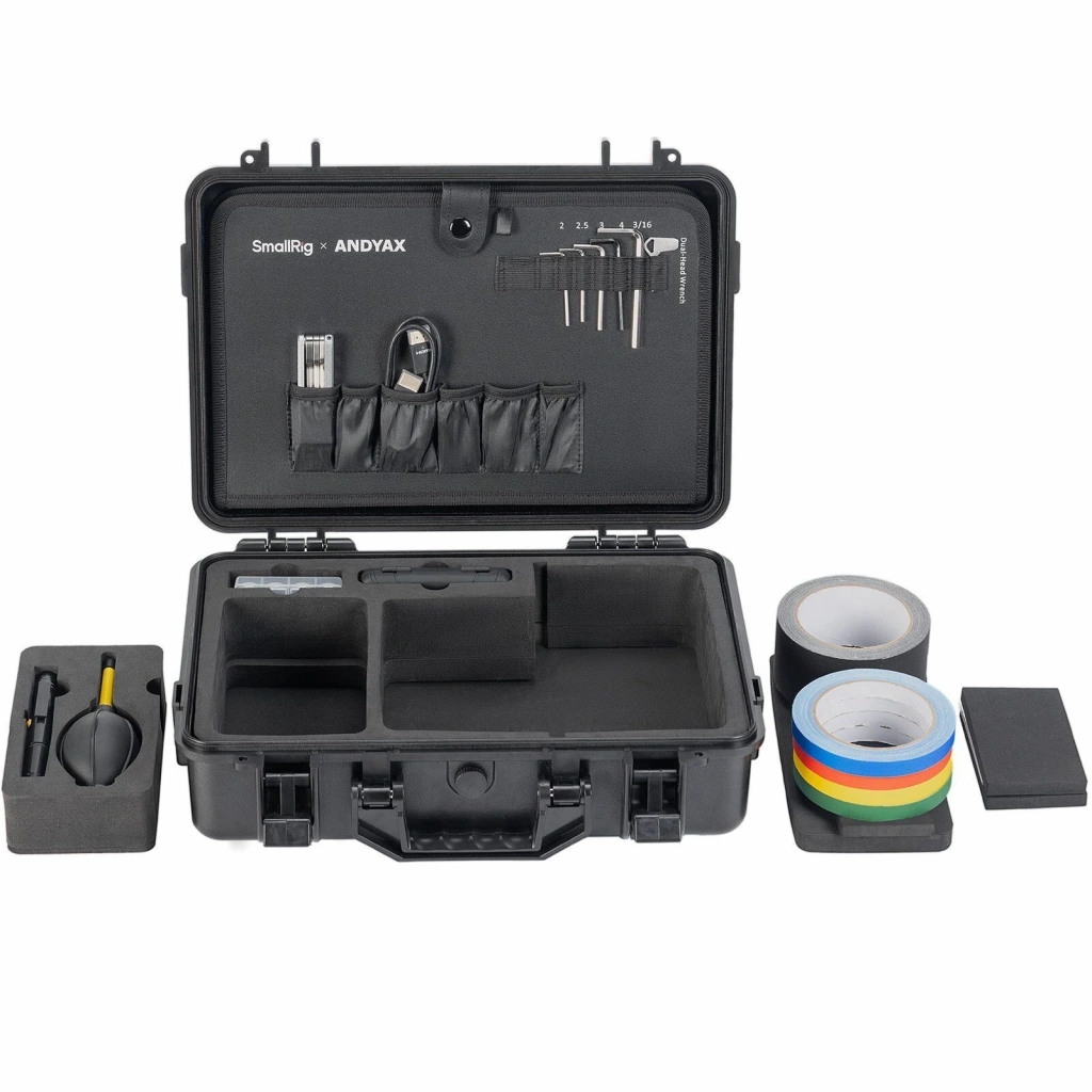 SmallRig x Andyax Creator Tool Kit 4562, stüdyo çekimleri için tasarlanmış nihai araç setidir. Kit, bir montaj araç seti (7'si 1 arada Katlanabilir Çok Amaçlı Araç Seti AAK2213D , Allen anahtarı, çift taraflı düz anahtar, Paslanmaz Çelik Vida Seti AAK2326 ), bir lens temizleme seti (toz üfleyici, temizleme kalemi, mikrofiber temizleme bezi), bir yapışkan etiketleme seti (kanal bandı seti ve Velcro) ve veri depolama ve aktarım seti (Hafıza Kartı Kutusu 3192 , HDMI Veri Kablosu 2957B ) içerir. Kutunun iç kısmı, kişiselleştirilmiş yapılandırmalara ve alanın esnek bir şekilde düzenlenmesine olanak tanıyan özelleştirilebilir boş alanlar ve modüler depolama alanları ile tasarlanmıştır. Dahası, kutu su geçirmez, toz geçirmez ve darbeye dayanıklı olacak şekilde üretilmiştir ve değerli ekipmanlarınız için sağlam koruma sağlar.