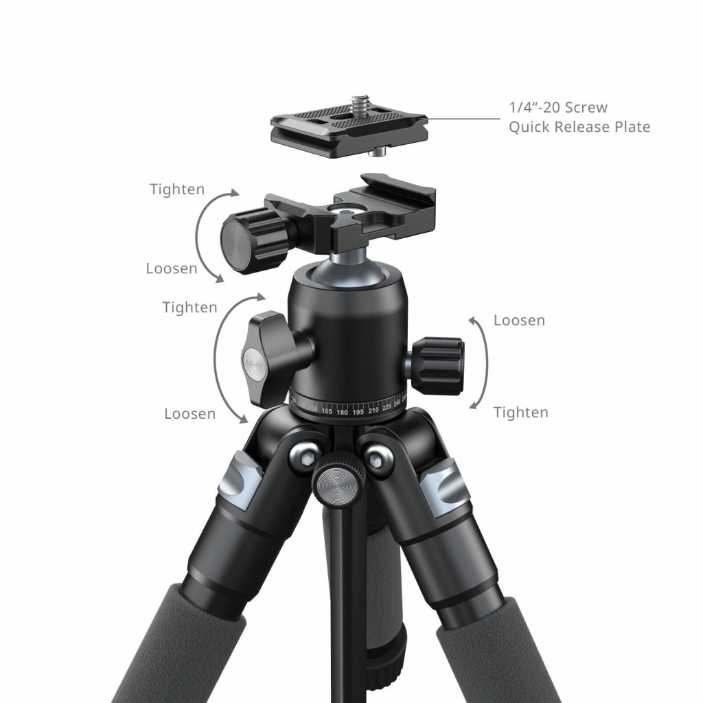 SmallRig VT-20Pro Taşınabilir Masaüstü Tripod 5470, fotoğrafçılık, videografi ve canlı yayın uygulamaları için tasarlanmıştır. Tripodun üst kısmında kamera bağlantısı ve aksesuar genişletme için 1/4"-20 vida bulunurken, başlık tabanında geniş bir yelpazedeki fotoğraf ekipmanıyla uyumluluğu sağlamak için 3/8"-16 vida yer almaktadır.