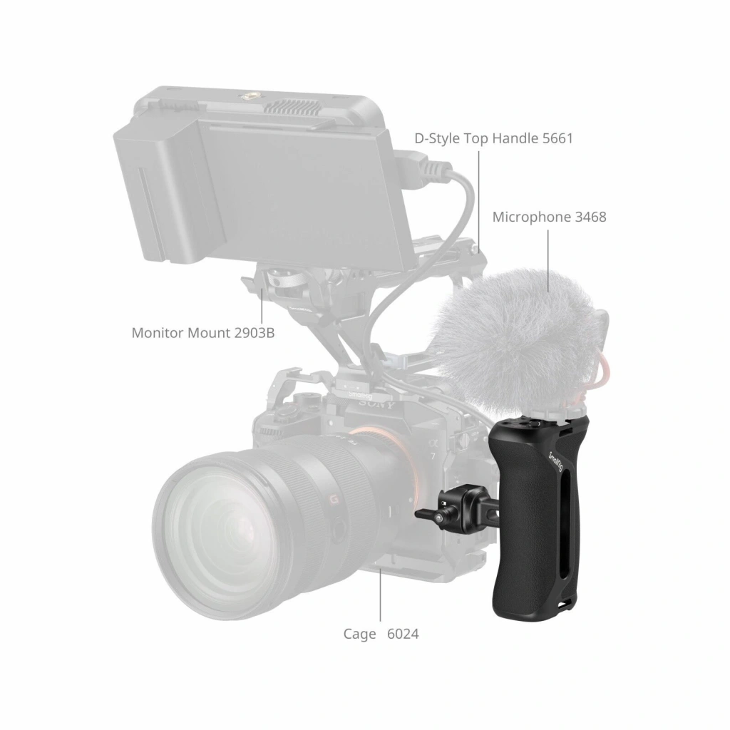 SmallRig 5952 NATO Kelepçeli Yan Tutamak, dinamik elde çekimleri geliştirmek, akıcı hareket ve kusursuz kontrol sağlamak ve çok yönlü genişletme seçenekleri sunmak üzere tasarlanmıştır. NATO kelepçesi aracılığıyla kamera kafeslerine güvenli bir şekilde takılır ve geniş uyumluluk için uyumlu bir NATO rayı içerir.