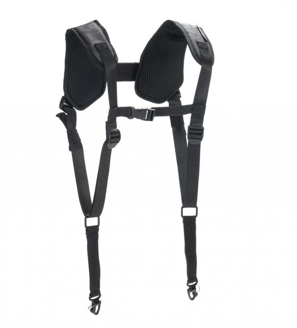 Daha sonra birlikte verilen Çift Saplı Braketleri gimbalinize takabilir ve Sapları Yeleğe takmak için Omuz Askılarını ve Destek Askılarını kullanabilirsiniz.