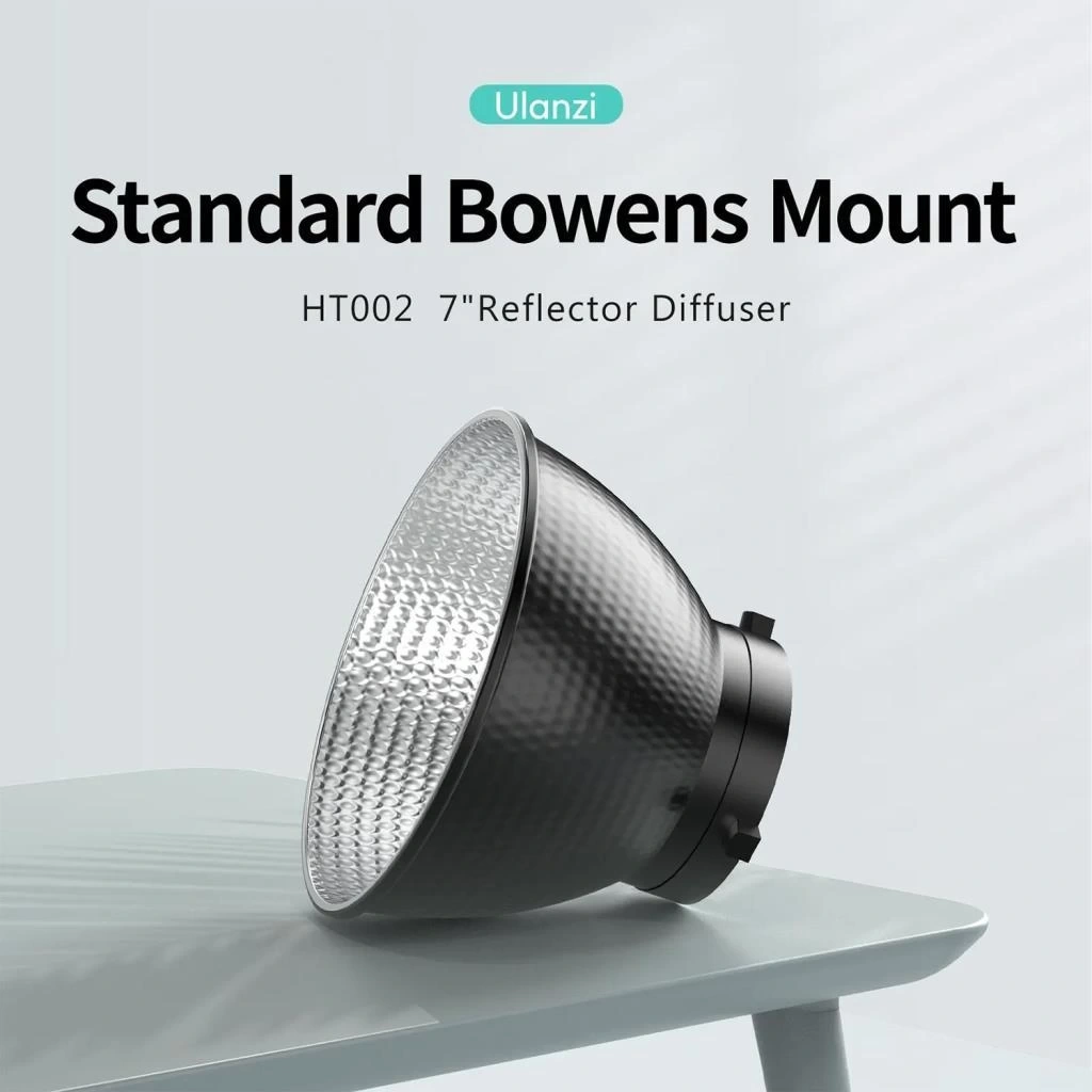 Ulanzi HT002 7" Reflektör Difüzör, Standart Bowens Mount, Alüminyum Alaşım Reflektör, Fotoğrafçılık Aksesuarları, Ulanzi 100W 120W 200W ışık uyumu, Yüksek performanslı ışık dağılımı, Portre ve ürün çekimi reflektör difüzörü.