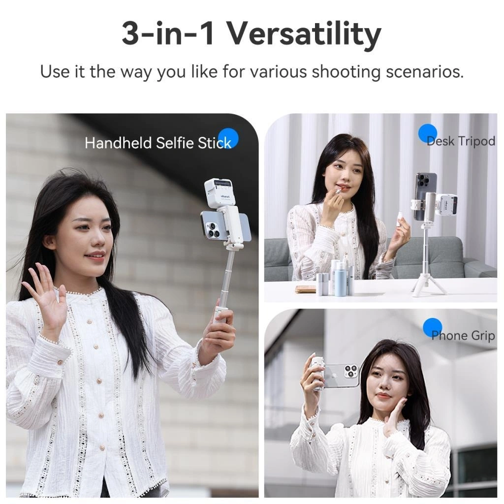 Ulanzi JJ02 Uzatılabilir Tutacak Telefon Tripod'u akıllı telefonlar için çok yönlü bir çekim tutacağı, selfie çubuğu ve masaüstü tripod kombinasyonudur. Bu telefon tutacağı çekim stabilitesini artırır ve vlog, canlı yayın ve günlük kullanım için idealdir. Kablosuz uzaktan durum göstergesine sahip çıkarılabilir bir Bluetooth kablosuz uzaktan kumanda içerir. Entegre başlık daha kolay konumlandırma için 225° eğilir ve 360° döner ve telefon tripod yuvasında Işıklar ve Mikrofonlar için 2 adet soğuk ayakkabı yuvası bulunur. Cebinize kolayca sığar ve sadece 116 g'a kadar katlanır.